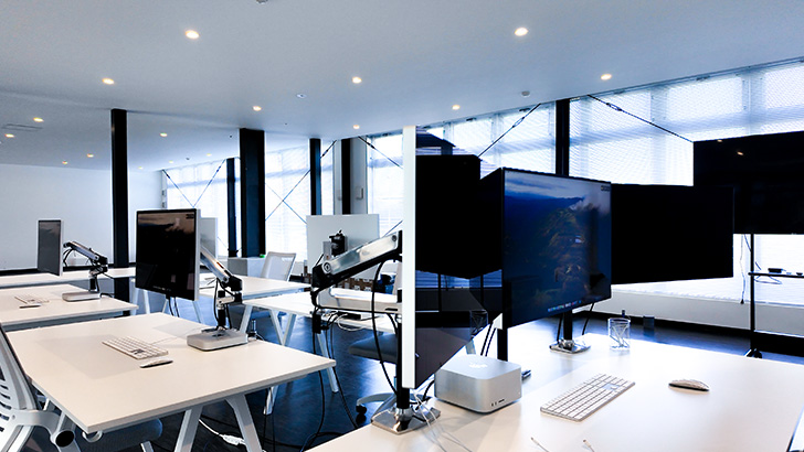 最大4名が同時に受講できるハイスペックPCと10Gbpsのネットワーク環境を完備。安定した高速通信環境で快適な作業が行えます。