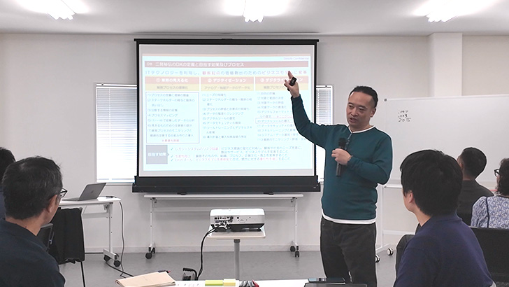 DXの定義から、ロジックの提供、事例研究とロープレと実務に至るレベルまで伴走支援で実施。